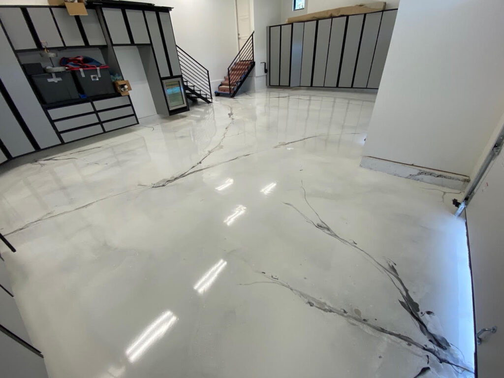 - Metallic Epoxy Elegant and fashionable ideal for showrooms or stylish interiors.
